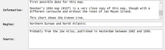 Within multi-line text fields, inserting carriage return within the text instructs the program to format this text as multiple paragraphs, when displayed in the Item Details view of the collection window. This allows very long texts in a field to be broken into paragraphs, to make a more readable presentation in the Item Details display. Note that when entering text into a multi-line text box, the program automatically folds the text into multiple lines. But if you explicitly type a <Return> character (on many keyboards, this is done with the <Enter> key), the program adds a new line, with a visible blank area between the previous text and the new text.