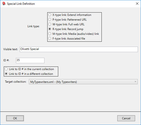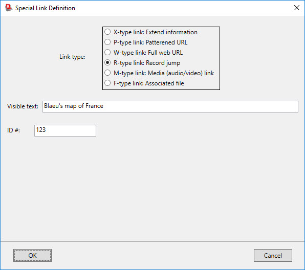To create an R-link, select the R-type link: Record jump radiobutton. Then enter the ID # of the desired destination record: