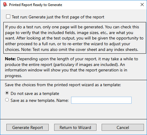 See the section, below, on Report Wizard Templates for information on how to save and re-use the choices you made in the wizard.