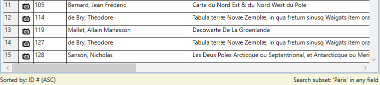 Recollector displays, in its List View and in the Image Gallery, all the