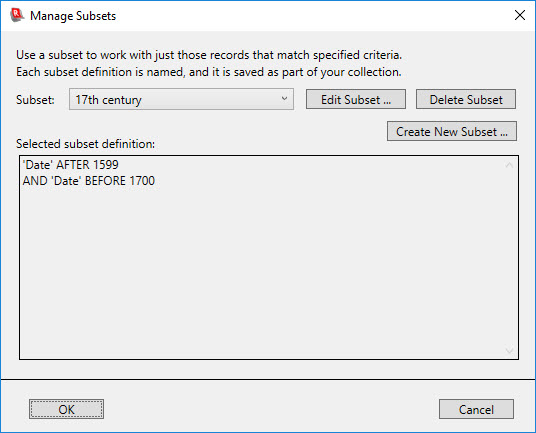 switch the display to show the definition of a different subset. Here is an example of what the dialog box