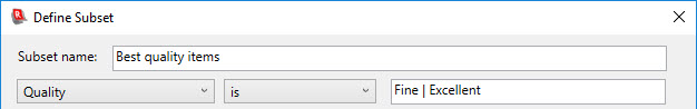 To remove a specific condition from the subset specification, click the condition in the list and click the Remove from Subset button.
