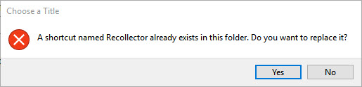 Click Finish. Since you probably already had a Desktop shortcut icon for Recollector (from the initial installation of the program), you might see the following warning: