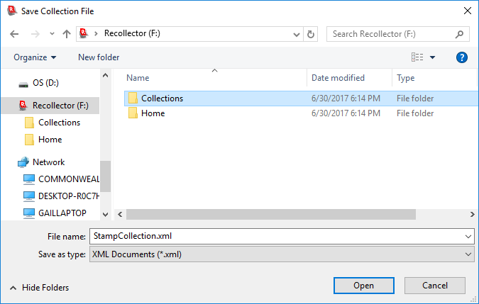 If you have already been using Recollector on your computer's hard disk, and you now want to take advantage of the thumb drive option, you will probably want to copy your collection from the hard disk to the thumb drive. There are two ways to copy your collection to your thumb drive; choose the method that makes most sense for your collection data.