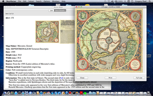 Recollector on the Mac is not just a copy of the Windows version, it is a true Macintosh application, which takes advantage of many of the elegant features of the Mac OS X environment, such as the ability to open multiple documents (i.e., multiple collections) simultaneously, auto-saving of your changes, time-machine like "versions" that lets you go back in time, if needed, to revert to an earlier version of your collection.
